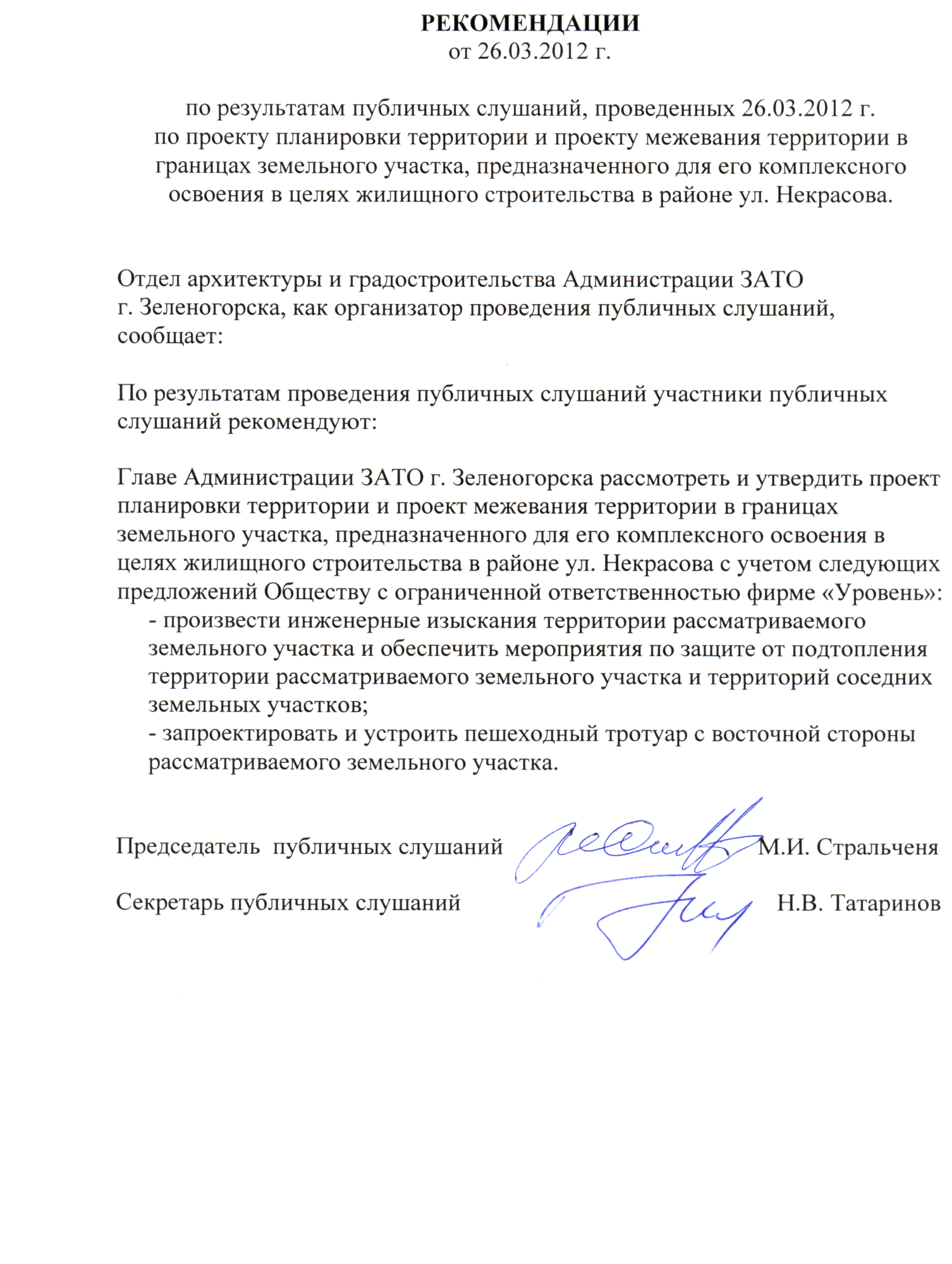 О назначении публичных слушаний по проекту планировки территории и проекту межевания территории в границах земельного участка, предназначенного для его комплексного освоения в целях жилищного строительства в районе улицы Некрасова