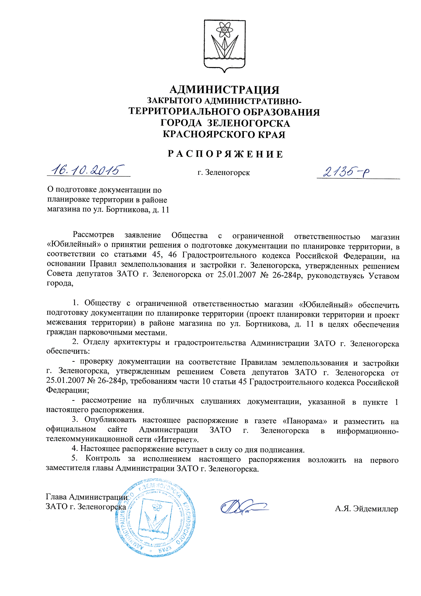Распоряжение об утверждении проекта планировки (.pdf, 977 Кб.) Скачать