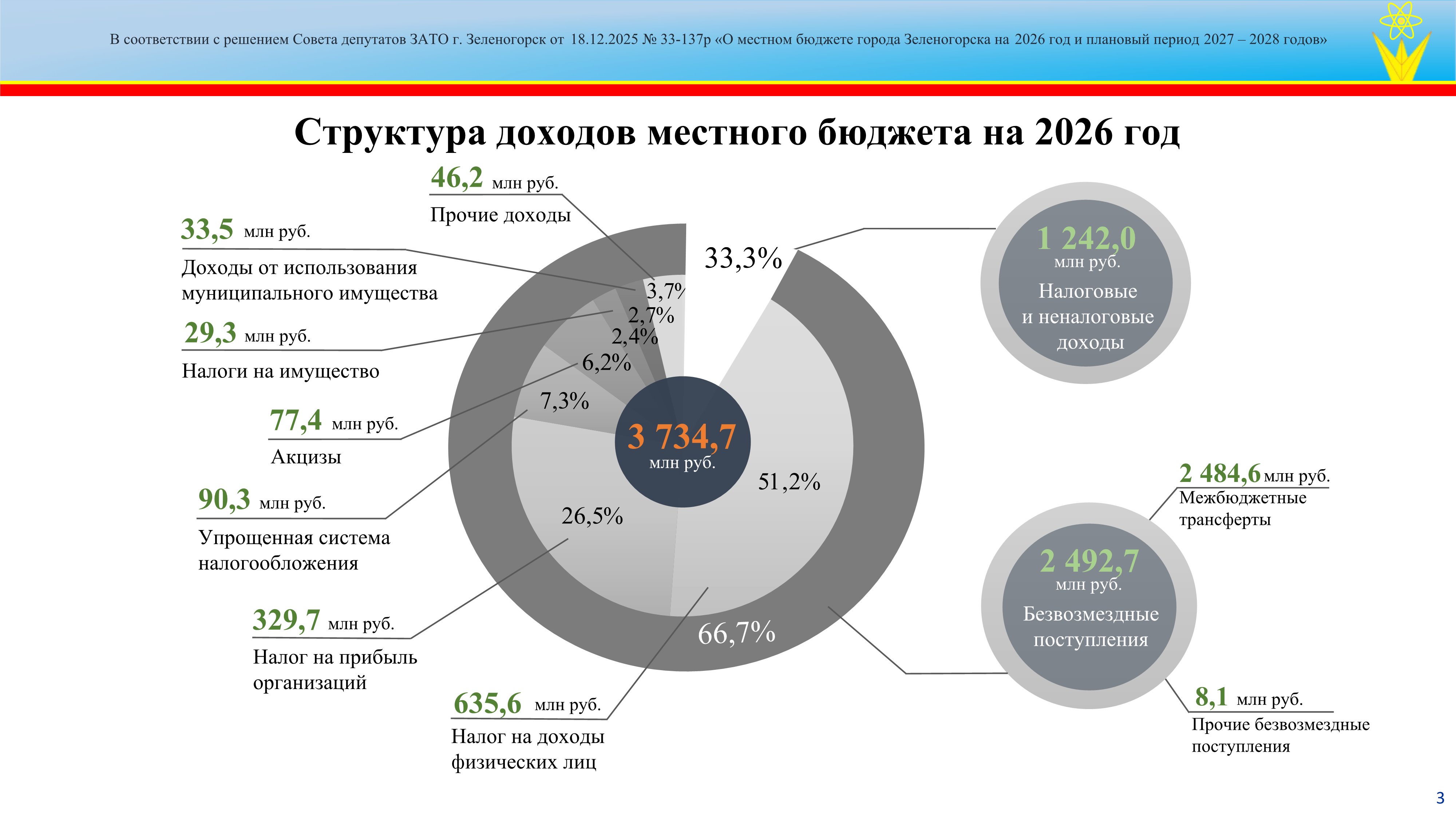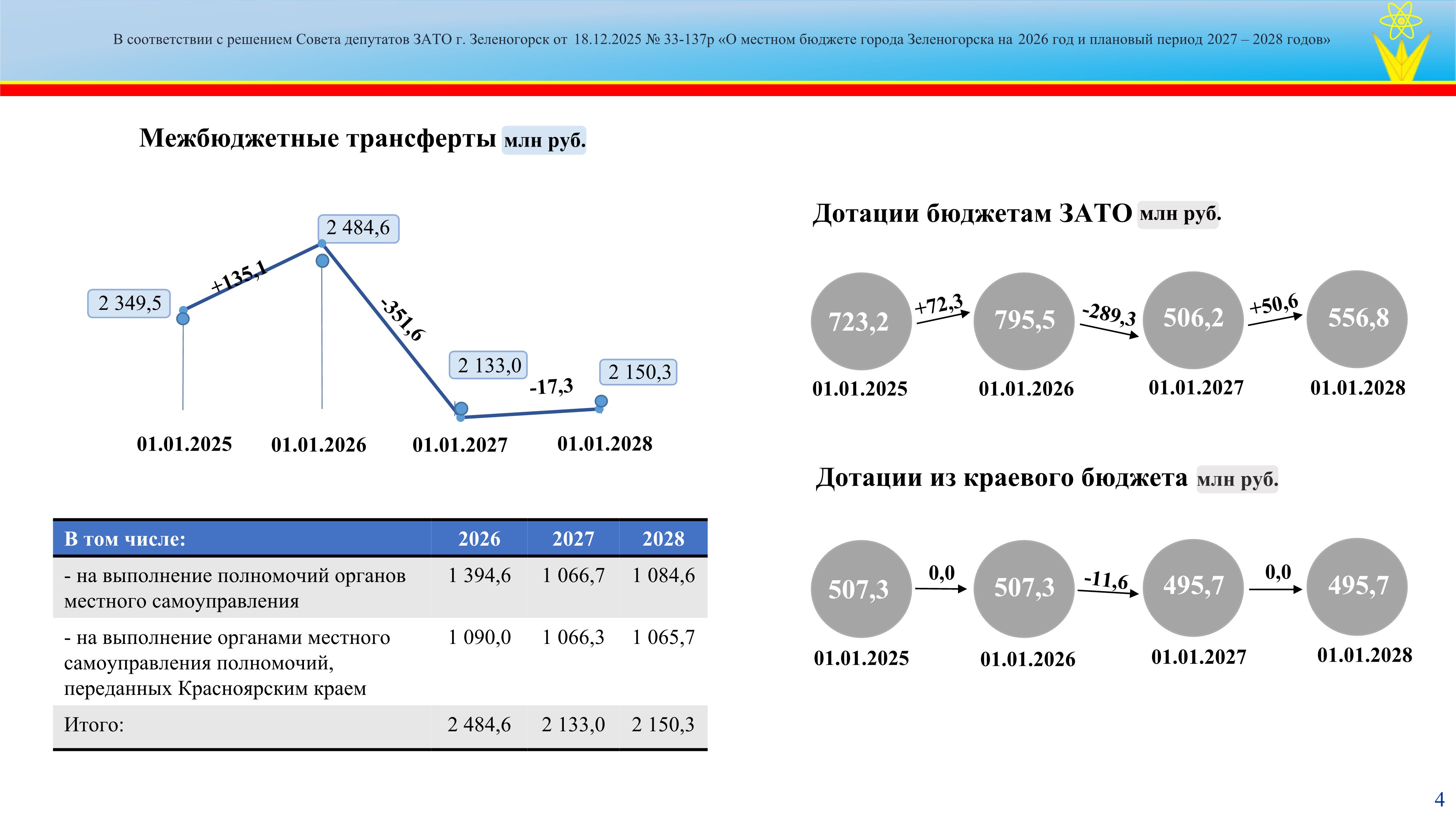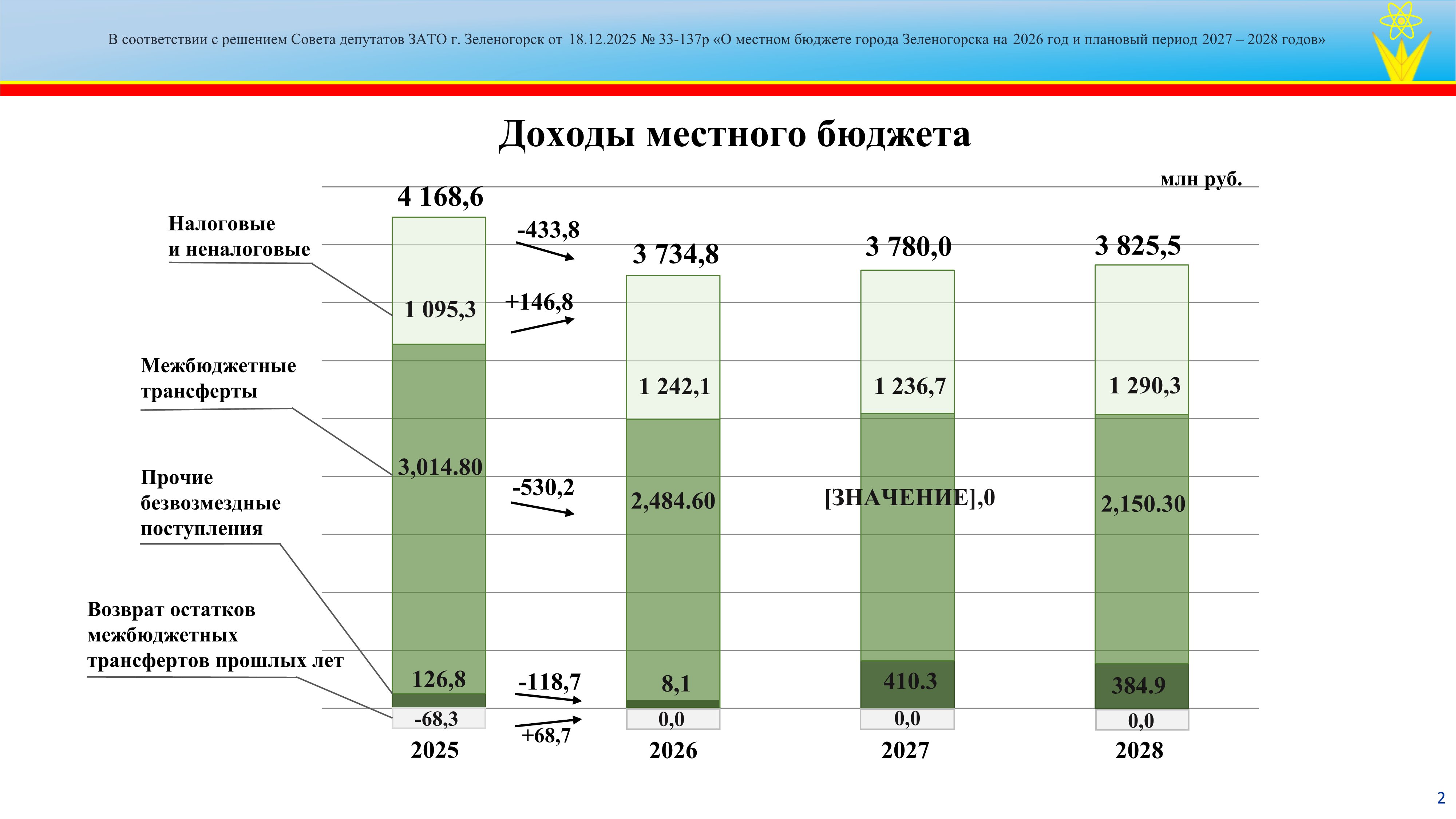 Решение Совета депутатов ЗАТО г. Зеленогорск от 18.12.2025 № 33-137р "О местном бюджете города Зеленогорска на 2026 год и плановый период 2027 - 2028 годов"