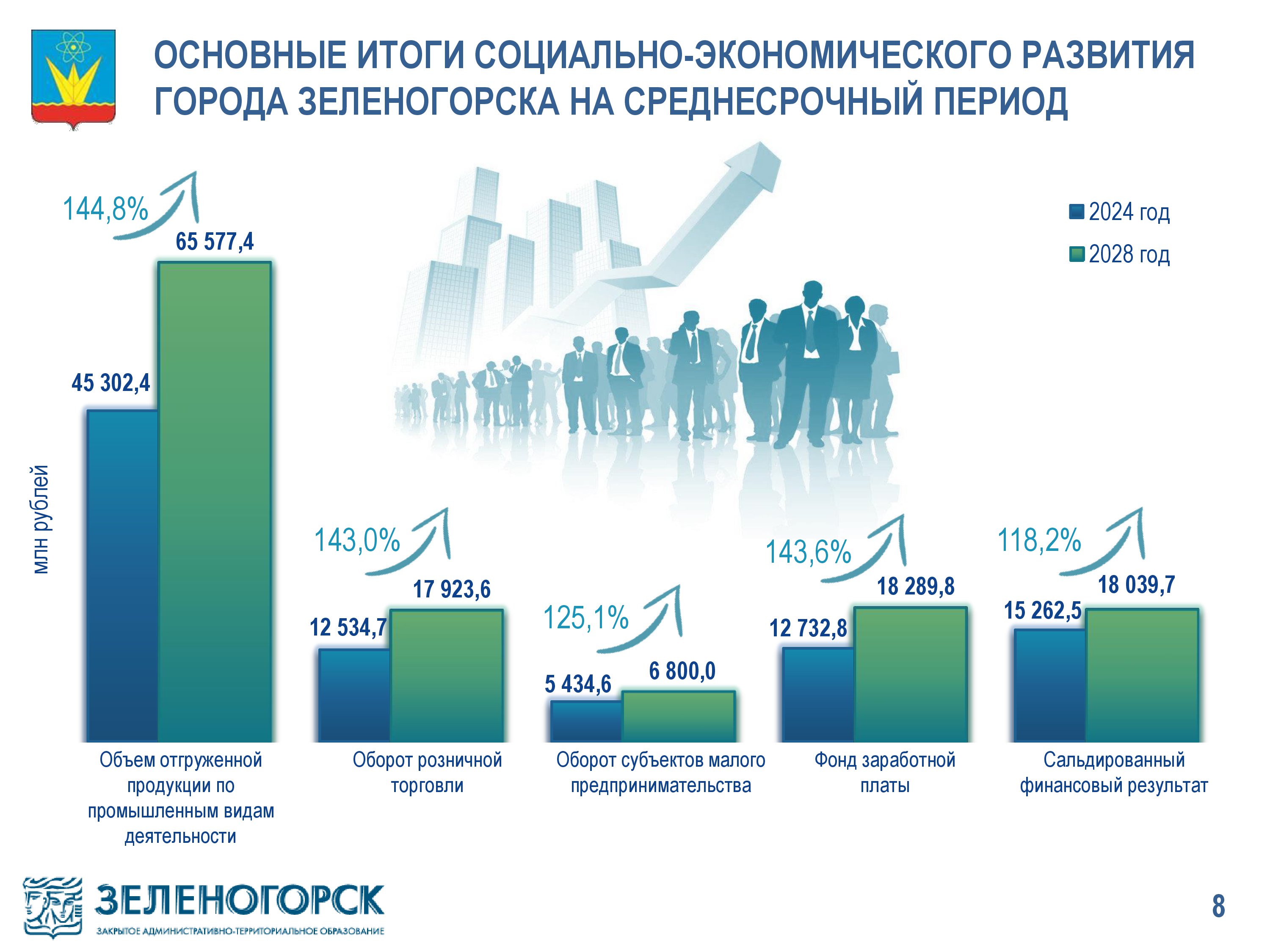 Динамика основных показателей социально-экономического развития города Зеленогорск на 2026 год и плановый период 2027-2028 годов