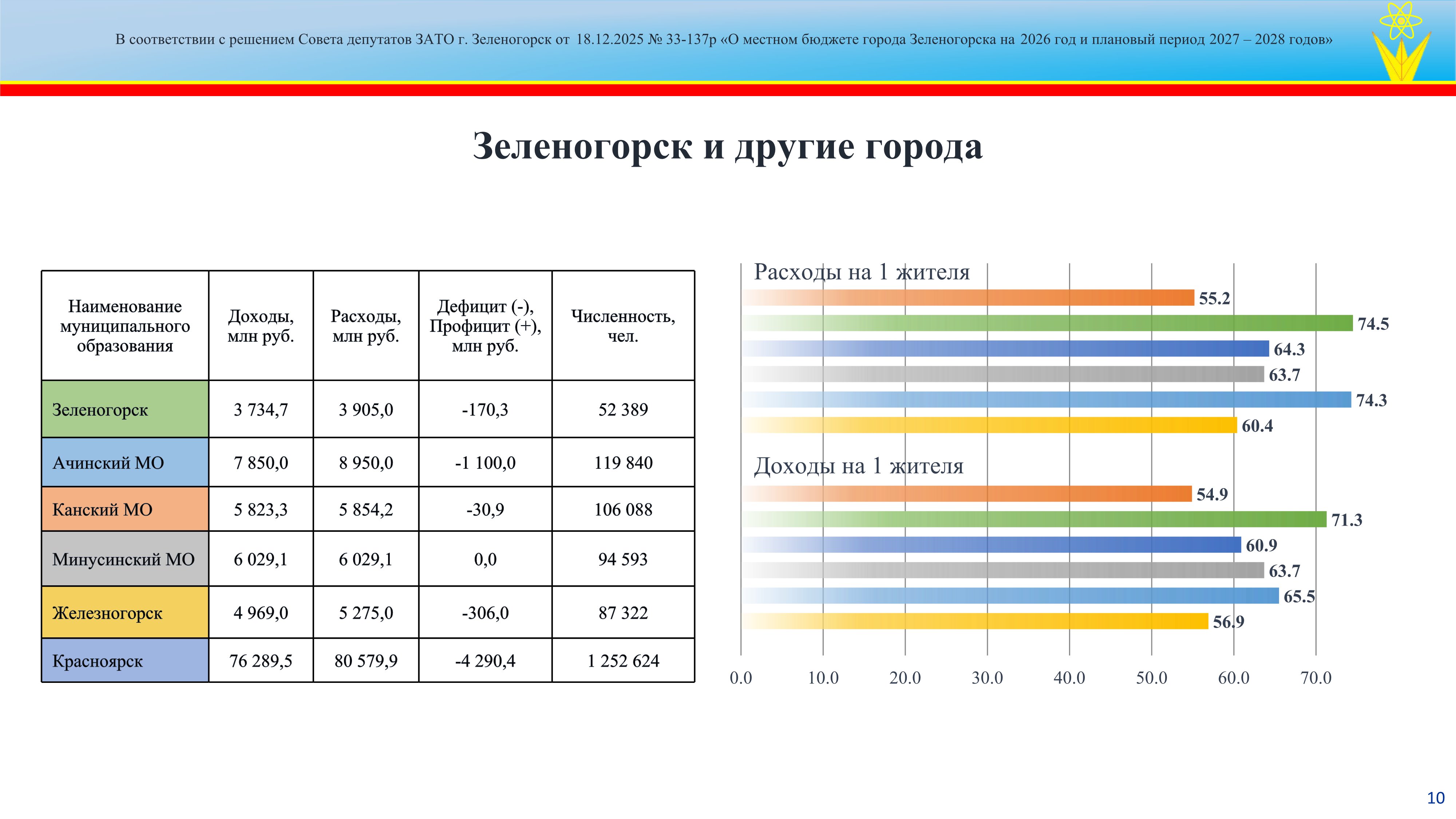 Решение Совета депутатов ЗАТО г. Зеленогорск от 18.12.2025 № 33-137р "О местном бюджете города Зеленогорска на 2026 год и плановый период 2027 - 2028 годов"