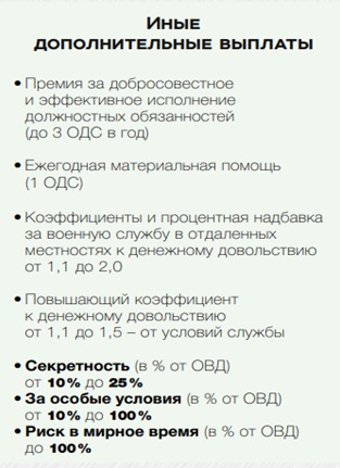 Средний размер денежного довольствия офицера составляет от 43,0 до 94,0 тысяч рублей в месяц. Конкретный размер зависит от следующих факторов:
